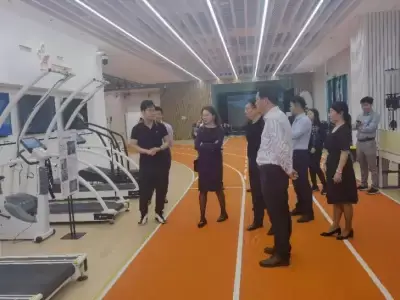 在华为运动健康科学实验室,考察组实地考察乒乓球运动研究检测区、多功能运动研究检测区,详细了解华为用科技创新促进运动健康产业生态发展的工作情况,并与华为运动健康产业首席专家围绕运动健康、智能康复和健康监测等领域进行座谈交流。