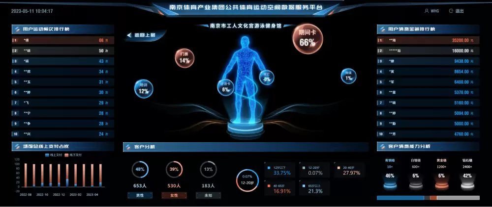 在运动人群数据层面,结合用户运动数据,建立脱敏用户群体画像,为用个人运动趋势作数据化分析,寻求精准营销并发掘运动KOL,也为经营业态的调整提供数据支撑。如对于青少年占比较大的运动空间,建议加大培训资源的投入;对于客单价较高的运动空间,建议增设VIP区,提供更高端优质的服务。