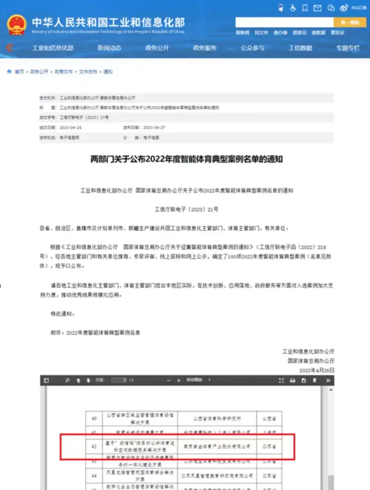 平台获得工信部和体育总局评选的智能体育典型案例;江苏体育产业发展专项资金项目、南京市创新产品、南京体育产业资源推荐产品,受到媒体关注,在新华社、学习强国、南京日报、扬子晚报和地方电视台有专门报道。